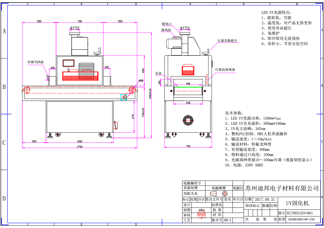 本UVLED固化一体机是最新一代多用途冷光源固化设备。主要运用于UV胶水的固化、UV树脂的固化,可选择365nm、385nm、395nm、405nm等不同波长,发光面积可根据实际固化面积选择;不同功率的LED对应固化涂覆在不同材质上的UV胶水、UV油墨、UV光油、UV油漆等。UVLED固化炉无需预热可即开即亮,高纯度照射,没有热辐射和深度紫外光,使用寿命长。经过几代的更新升级,增加了光源头过热报警保护、固化室温度在线检测、可联机流水线不停机在线工作等功能,大大的提高了设备的可靠性和生产效率。